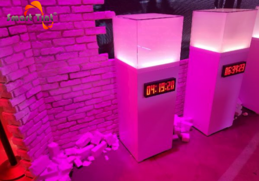 Smart Tint completed Reebok’s display boxes and is powered on to its transparent state as shown in image above .