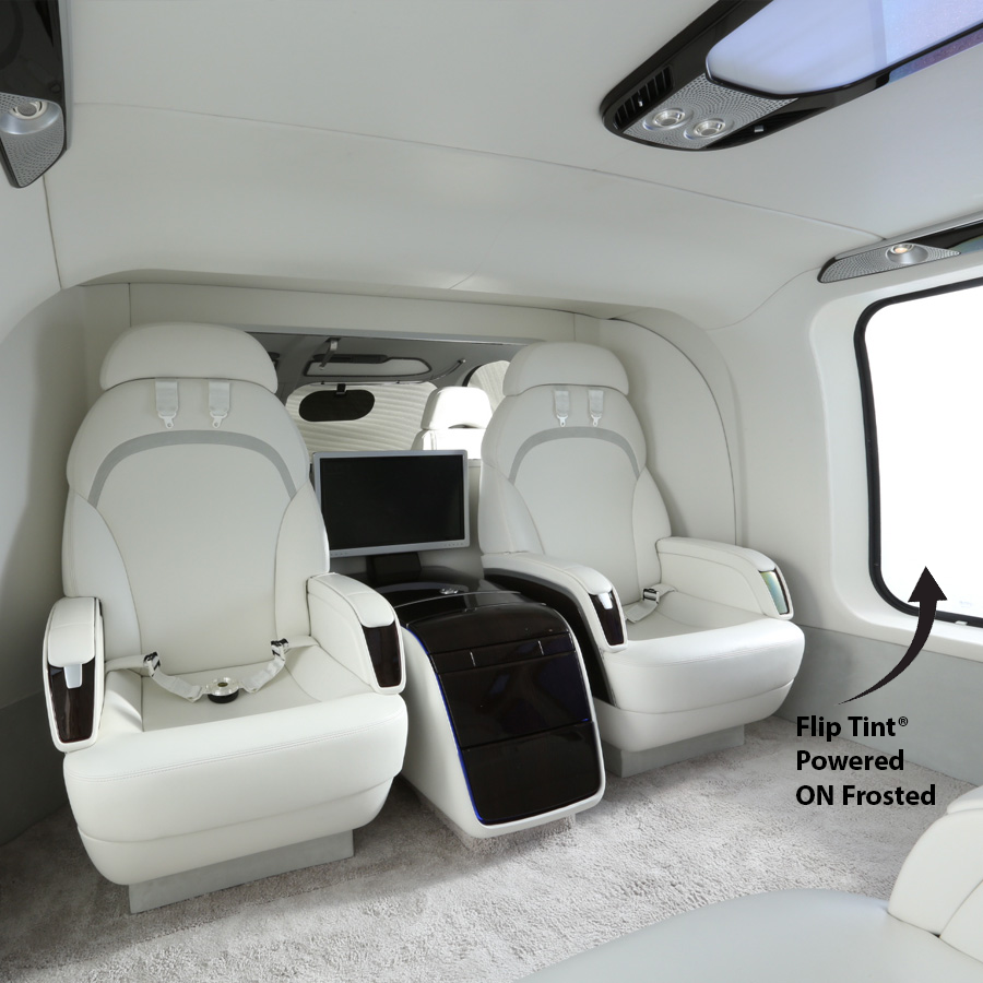 Mecaer Aviation Group in Italy utilizes Smart Tint’s® proprietary Flip Tint® technology for their aviation projects, a significant innovation in aircraft. Flip Tint® is the only smart glass film in the industry that powers off clear and powers on private, offering an unparalleled combination of transparency and privacy. By choosing Smart Tint’s® proprietary Flip Tint®, Mecaer Aviation Group is not only enhancing the aesthetics and functionality of their aircrafts but also setting a new standard in the aviation industry.