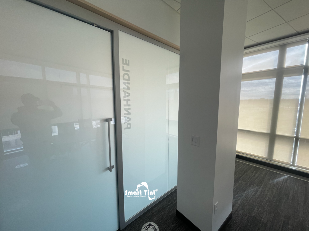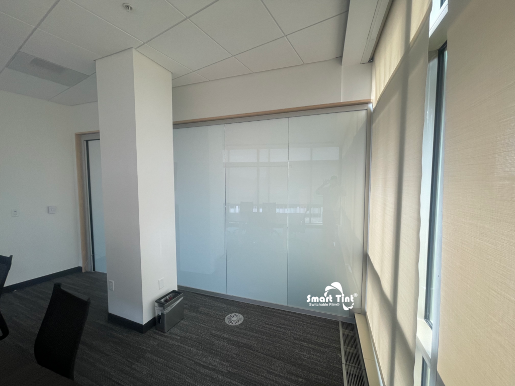 Upgrade your conference space effortlessly with our cutting-edge Smart Tint technology! Our retrofit solution features Smart Cling Self-Adhesive, making installation a breeze on any glass surface. In seconds, switch from transparent to a sleek, frosted white for instant privacy. Perfect for dynamic meeting environments, our Smart Tint offers privacy on demand and transforms your workspace into a versatile, innovative hub. Embrace the future of office design today.